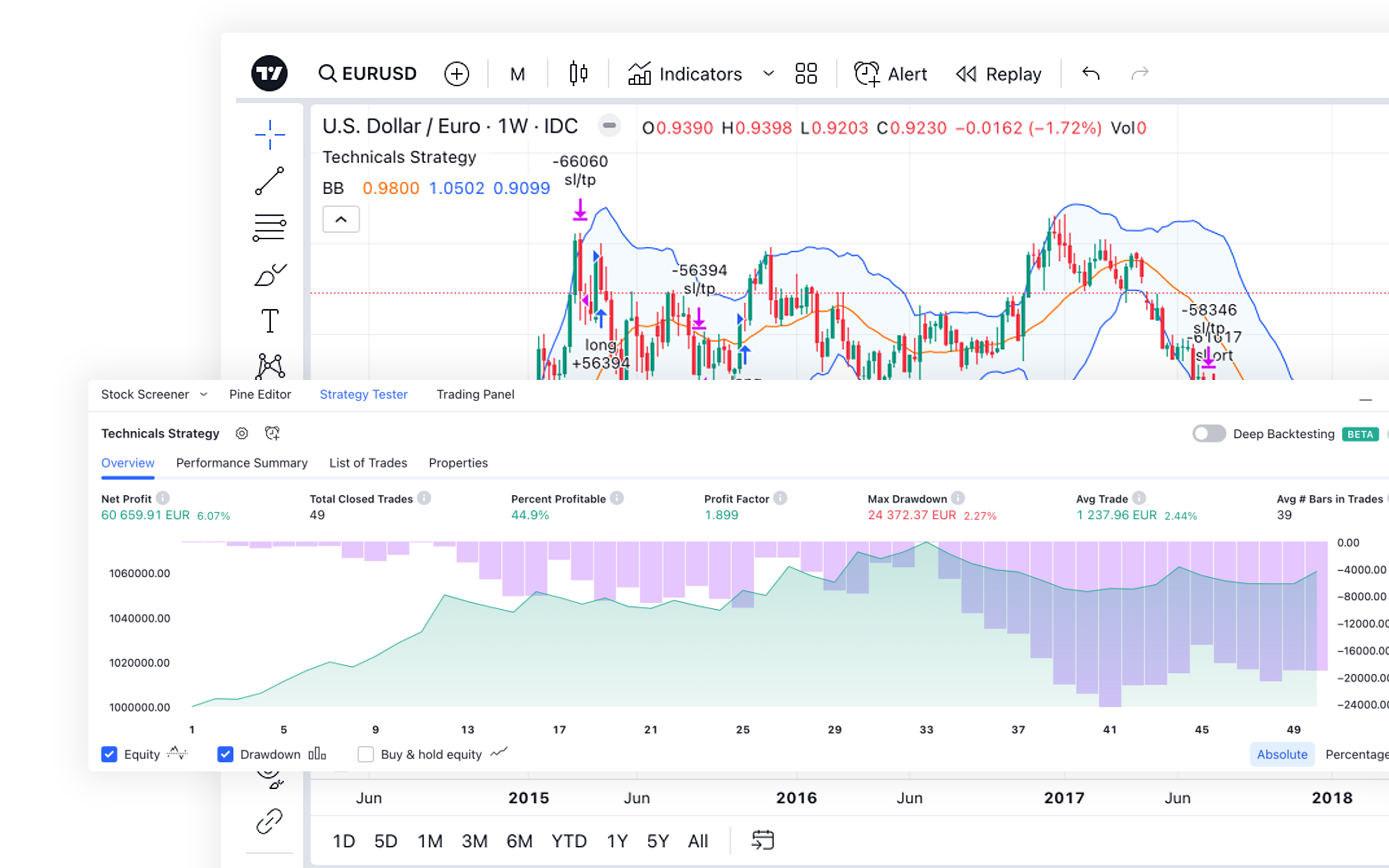 Pine Script™ is TradingView’s programming language, designed for creating custom indicators and strategies that can be backtested.